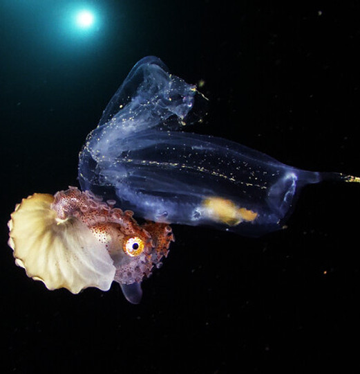 Synopsis : « Au-delà de la barrière de corail, la haute mer est un biotope rempli de créatures étranges, d’associations inhabituelles que l’on peut observer à la dérive lorsqu’on s’aventure dans les profondeurs la nuit … »